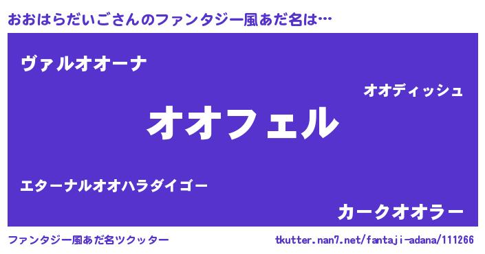 | 男性向けラノベタイトル風あだ名 | 『オオハラダイゴアートオンライン』 |