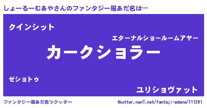 | 欧米人風あだ名 | 『しょーるーむあや・ステッグマイヤー』 |