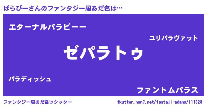 | 女子向けラノベタイトル風あだ名 | 『ぱらびーなんてお断りですっ。』 |