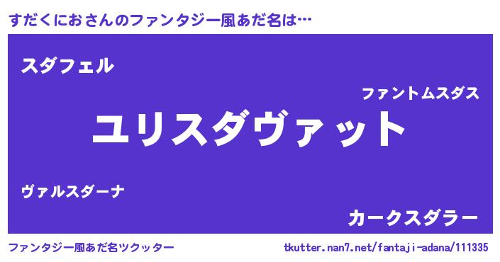 | 男性向けラノベタイトル風あだ名 | 『スダクニオスレイヤー』 |