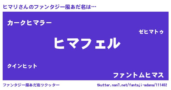 | ヒーロー風カッコイイあだ名 | 『スーパーヒマリ』『幻影騎士ヒマ』 |