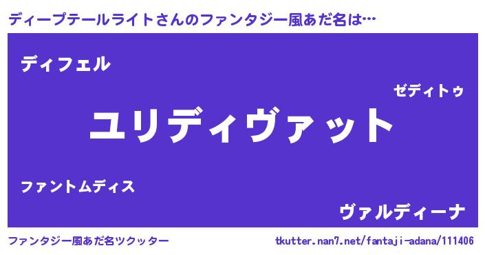 | 女子向けラノベタイトル風あだ名 | 『ディープテールライトの玉の輿計画!』 |