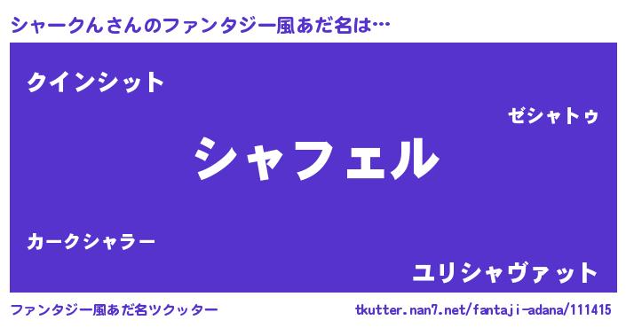 | 男性向けラノベタイトル風あだ名 | 『シャークンアートオンライン』 |
