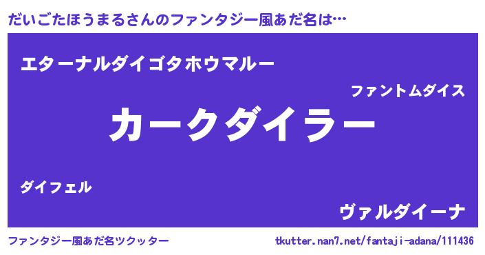 | 意味不明あだ名 | 『だいごたほうまるフォーエバー』 |