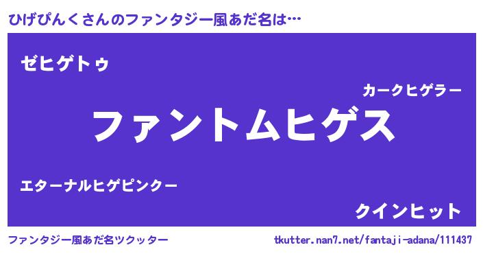 | 意味不明あだ名 | 『とにかく怪しいひげぴんく』 |