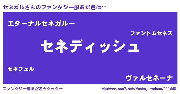 | 男性向けラノベタイトル風あだ名 | 『誰もが恐れるあのセネガルが、ぼくの専属メイドになるようです。』 |