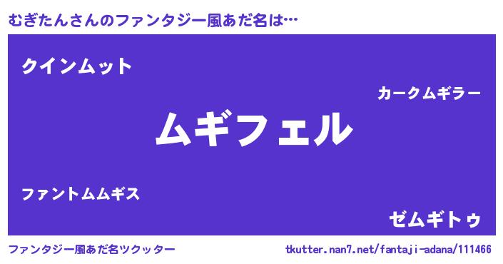 | ヒーロー風カッコイイあだ名 | 『スーパームギタン』『最強戦士ムギタン』 |