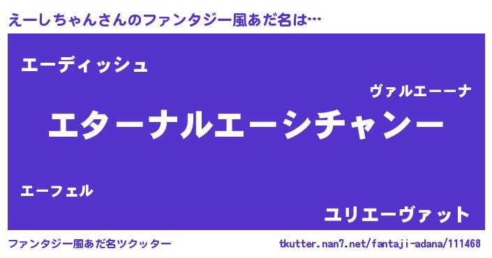 | 意味不明あだ名 | 『えーしちゃんフォーエバー』 |
