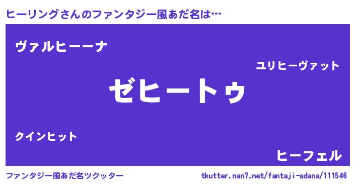 | 男性向けラノベタイトル風あだ名 | 『Re:ヒーリングから始める異世界生活』 |