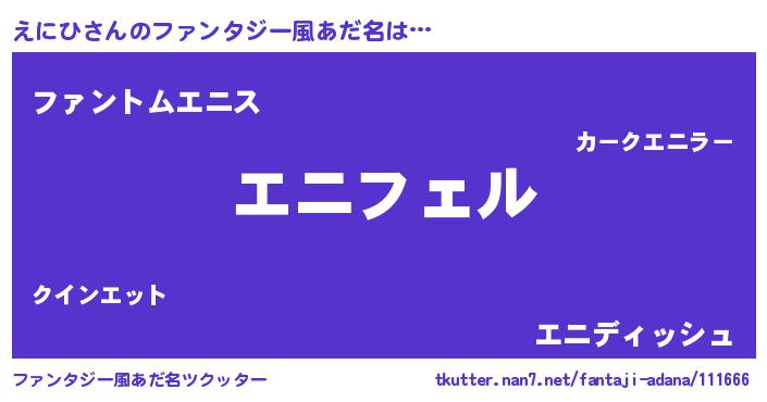 | ヒーロー風カッコイイあだ名 | 『スーパーエニヒ』『幻影騎士エニ』 |