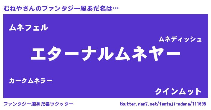 | 女子向けラノベタイトル風あだ名 | 『むねやの雑貨屋さん』 |