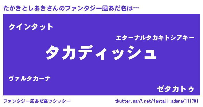 | 男性向けラノベタイトル風あだ名 | 『たかきとしあきという概念が存在しない退屈な世界 』 |