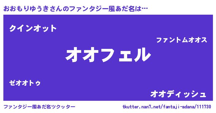 | 男性向けラノベタイトル風あだ名 | 『おおもりゆうきの憂鬱』 |
