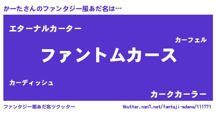 | 意味不明あだ名 | 『とにかく怪しいかーた』『自称かーた』 |
