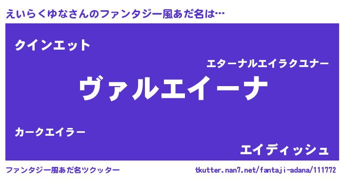 | 意味不明あだ名 | 『住所不定無職えいらくゆな(11歳)』 |