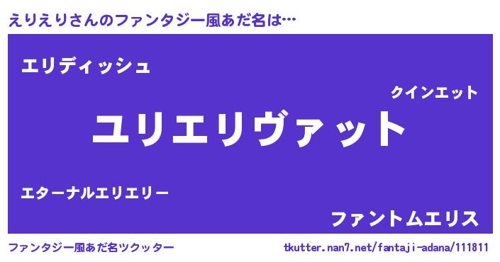 | 男性向けラノベタイトル風あだ名 | 『えりえり~年齢イコール彼女いない歴の魔法使い~』 |