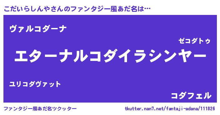 | 女子向けラノベタイトル風あだ名 | 『こだいらしんやの雑貨屋さん』 |