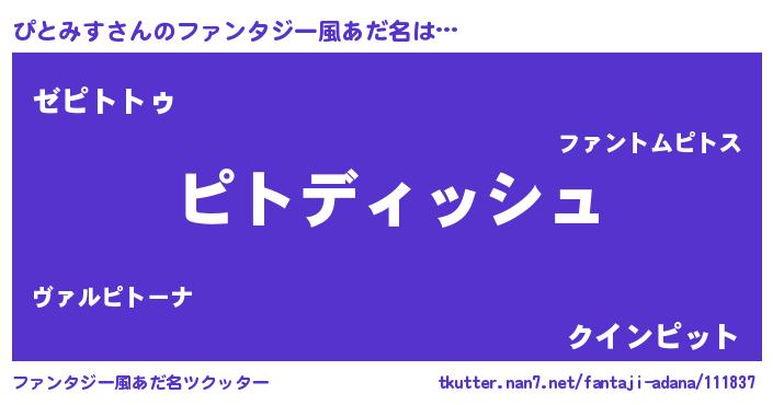 | 男性向けラノベタイトル風あだ名 | 『ぴとみすという概念が存在しない退屈な世界 』 |