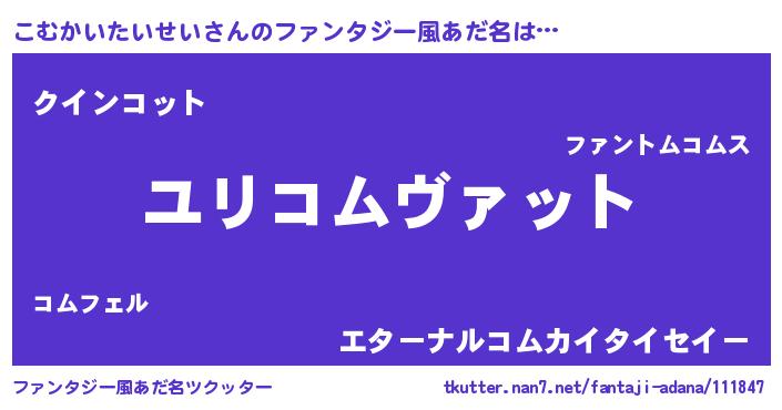 | 男性向けラノベタイトル風あだ名 | 『コムカイタイセイスレイヤー』 |