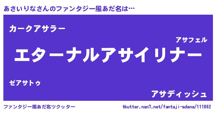 あさいりなさんのファンタジー風あだ名をツクッター!