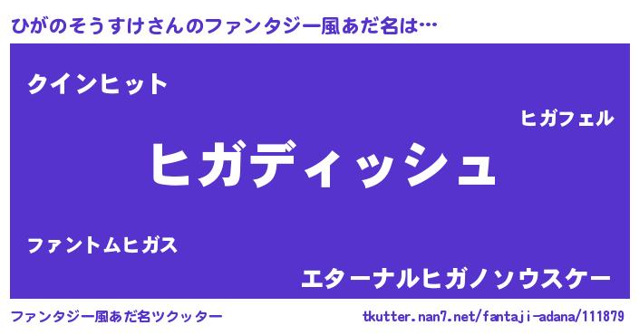 | ヒーロー風カッコイイあだ名 | 『ネオヒガノソウスケ』『炎刃騎士ヒガ』 |