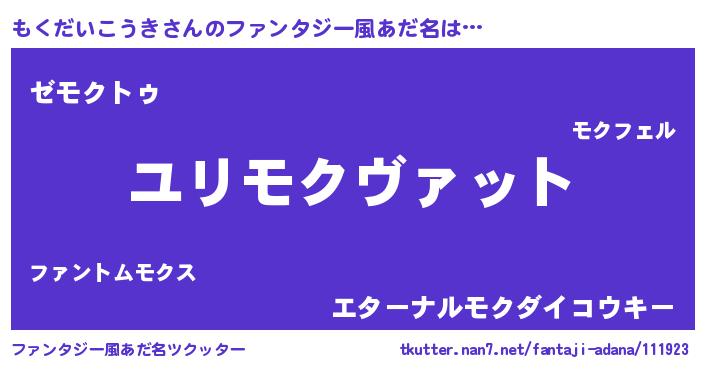 | ヘコむあだ名 | 『豆乳』『もくにー』『もくぷりん』 |