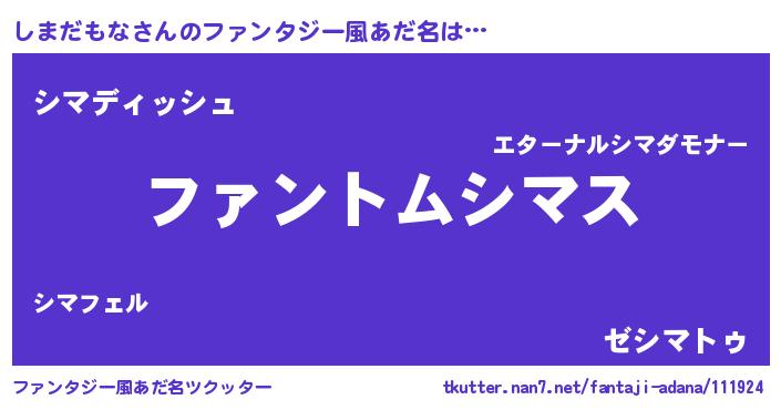| 男性向けラノベタイトル風あだ名 | 『しまだもなの嫁は女の子じゃないと思った?』 |