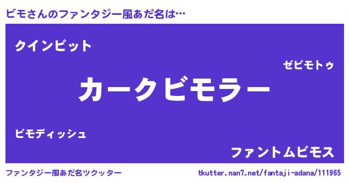 | ヒーロー風カッコイイあだ名 | 『天空の使者ビモ』『天弓騎士ビモ』 |