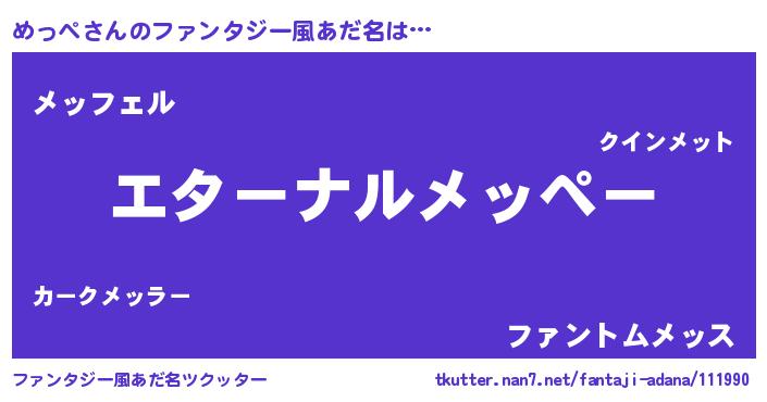 | ヒーロー風カッコイイあだ名 | 『ウルトラめっぺマン』『スーパーメッペ』 |