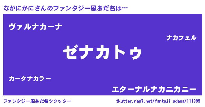 | 男性向けラノベタイトル風あだ名 | 『なかにかにに滅ぼされるだけの簡単なお仕事です』 |
