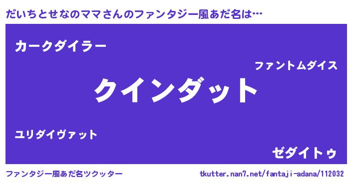 | 意味不明あだ名 | 『眠気覚ましガムだいちとせなのママ味』 |