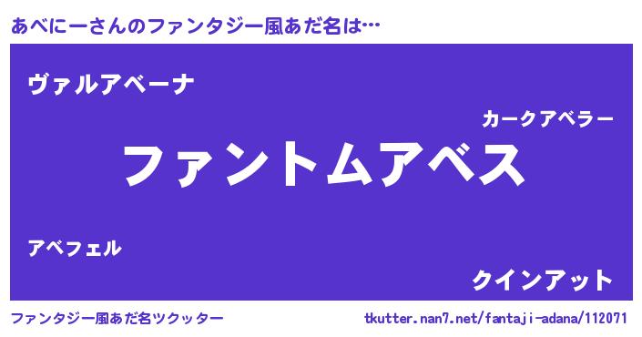 | 男性向けラノベタイトル風あだ名 | 『ダンジョンにあべにーを求めるのは間違っているだろうか』 |