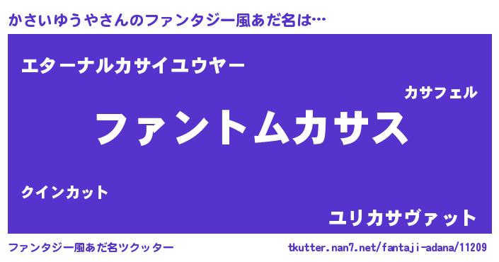 | ヒーロー風カッコイイあだ名 | 『黄金騎士カサ』『スーパーカサイユウヤ』 |