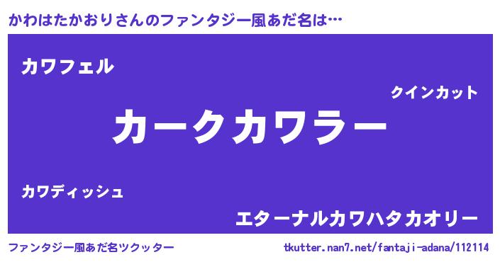 | ヒーロー風カッコイイあだ名 | 『スーパーカワハタカオリ』 |