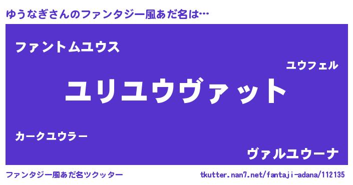| 男性向けラノベタイトル風あだ名 | 『ゆうなぎ~年齢イコール彼女いない歴の魔法使い~』 |