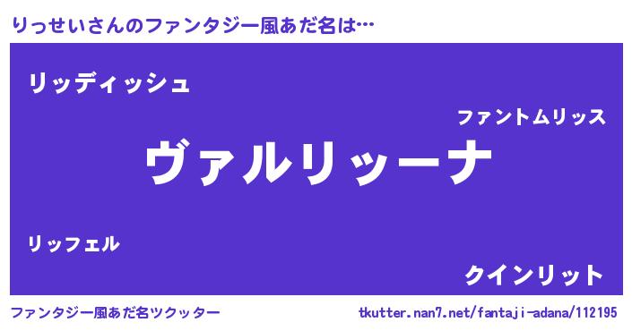 | 男性向けラノベタイトル風あだ名 | 『魔弾の王とりっせい』 |