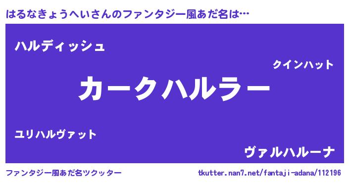 | 伝説のあだ名 | 『古文書に記された勇者はるなきょうへい』 |