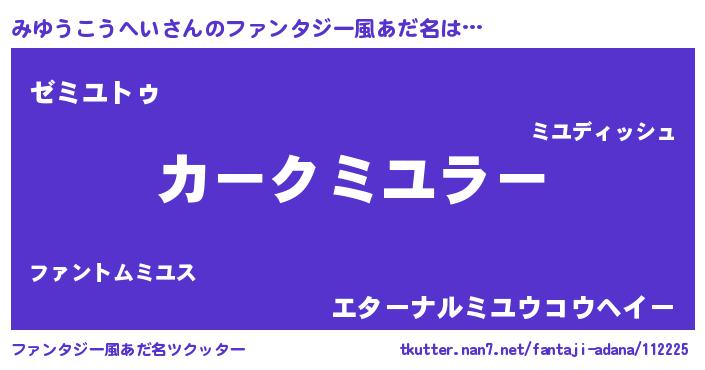 | 意味不明あだ名 | 『自称みゆうこうへい』 |