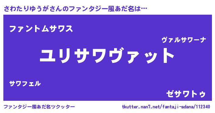 | 男性向けラノベタイトル風あだ名 | 『転生したらさわたりゆうがだった件』 |