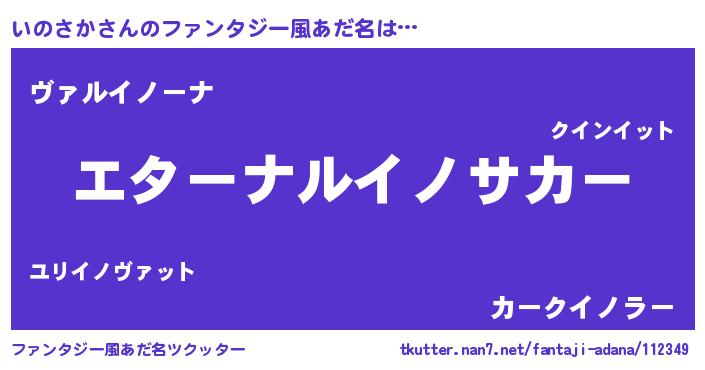 | 男性向けラノベタイトル風あだ名 | 『いのさかに滅ぼされるだけの簡単なお仕事です』 |
