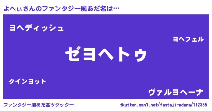 | 男性向けラノベタイトル風あだ名 | 『Re:よへぃから始める異世界生活』 |