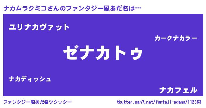 | 男性向けラノベタイトル風あだ名 | 『Re:ナカムラクミコから始める異世界生活』 |