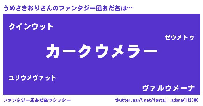 | 欧米人風あだ名 | 『うめさきおり・ステッグマイヤー』 |