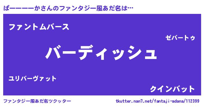 | 自動車の名前っぽいあだ名 | 『ヴィッバ』『バント』『フィッバ』 |