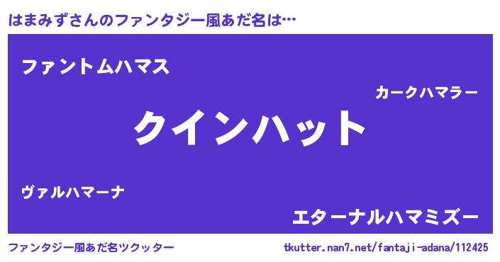 | ヒーロー風カッコイイあだ名 | 『天空の使者はまみず』『暗黒騎士ハマ』 |