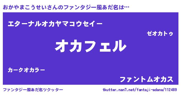 | 男性向けラノベタイトル風あだ名 | 『おかやまこうせいの憂鬱』 |