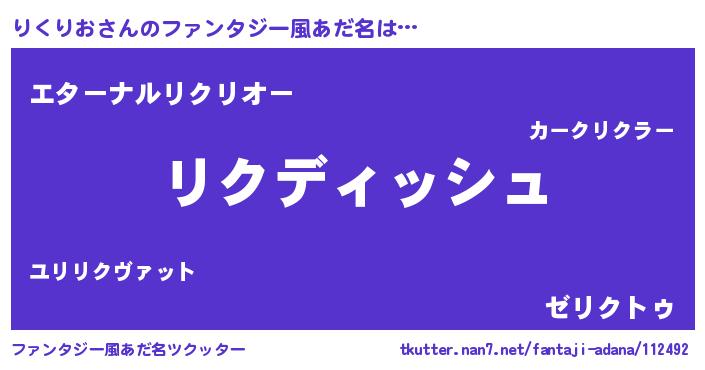 | 男性向けラノベタイトル風あだ名 | 『りくりおという概念が存在しない退屈な世界 』 |
