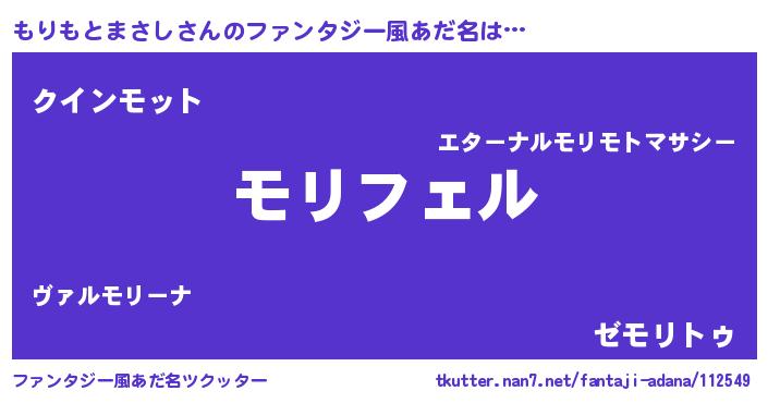 | 男性向けラノベタイトル風あだ名 | 『もりもとまさしの憂鬱』 |