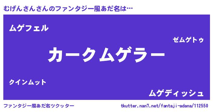 | 欧米人風あだ名 | 『むげんさん・ステッグマイヤー』 |