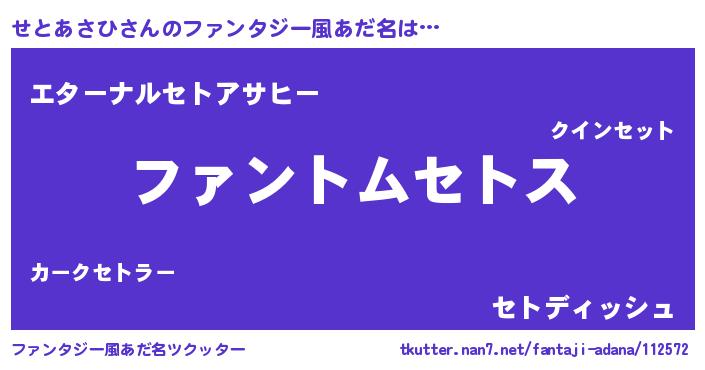 | ポケモン風あだ名 | 『セトゴンZ』『ヒセトアサヒ』 |